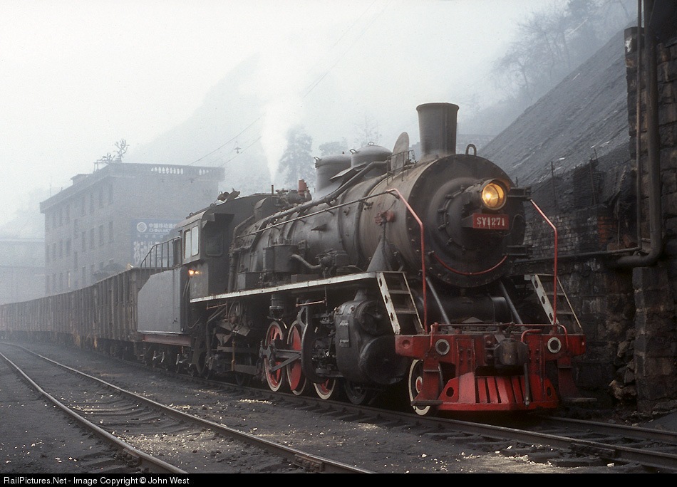| This industrial line remains powered by three SY's, with one in service on most days. It hauls coal and iron ore to a connection with China Rail at Ganshui (south of Chongqing), operating part of the way over the tracks of the Datong Coal Railway. The grotty pollution perhaps adds appropriate atmosphere for this sort of operation. The sun is rarely more than just a bright ball in the sky. |