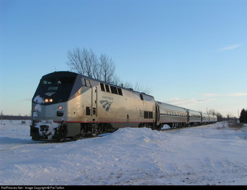 RailPictures.Net Photo: AMTK 100 Amtrak GE P42DC at Lacolle, Quebec, Canada by Pat.Taillon