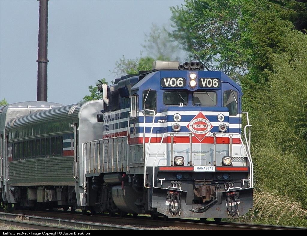 RailPictures.Net Photo: V06 Virginia Rail Express (VRE) EMD GP40-2 at Manassas, Virginia by Jason Breakiron