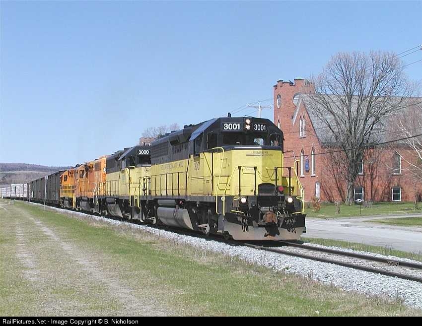 | The daily southbound leaves Richmond,Que headed for Island Pond VT led by GP40 3001. Quebec regionals offer a variety of old & new power. 3001 is ex B&O 3702 |
