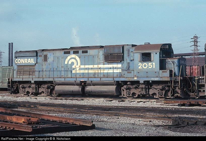 | Another rare Alco, the ex NYC engines all went to short lines after Conrail. The low sun lights up the details of Hi-Adhesion trucked 2051. |