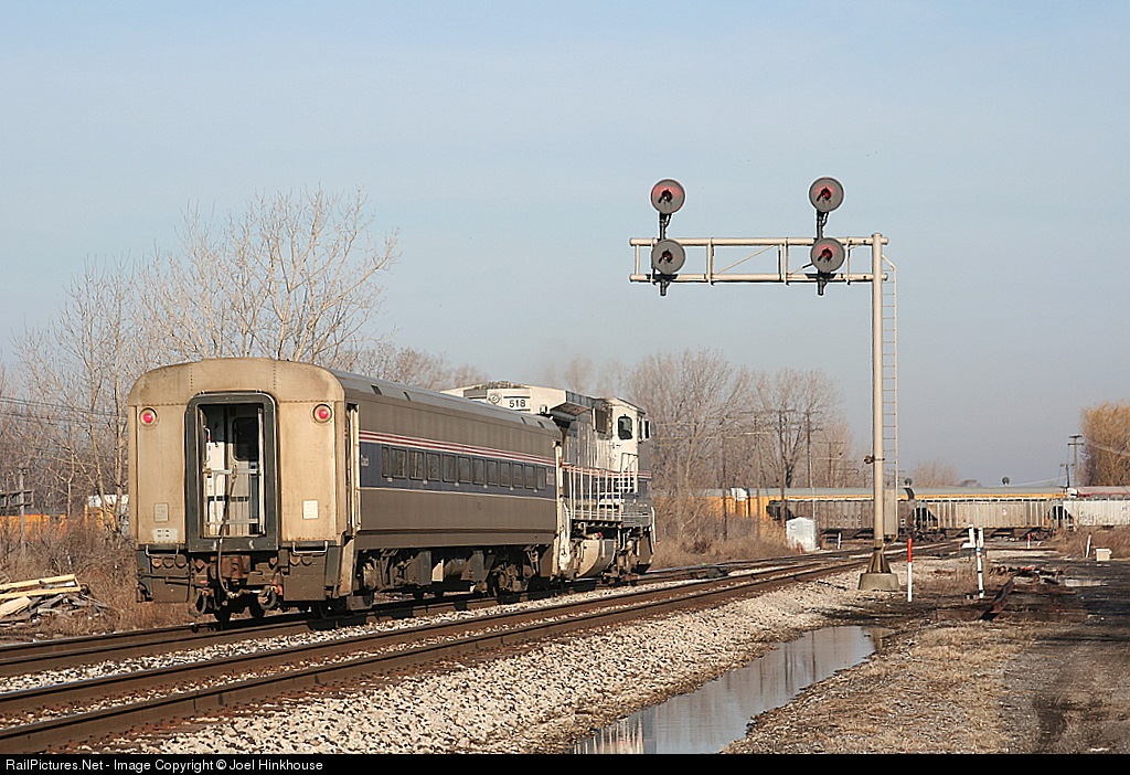 | The Hoosier State couldn't get much shorter without letting folks ride in the cab of the 518 ... although from the outside, every seat appeared taken. It is waiting for freight traffic to clear before turning north off its short jaunt on the CN (ex-GTW), ... it will then head through Dolton and into Chicago. |