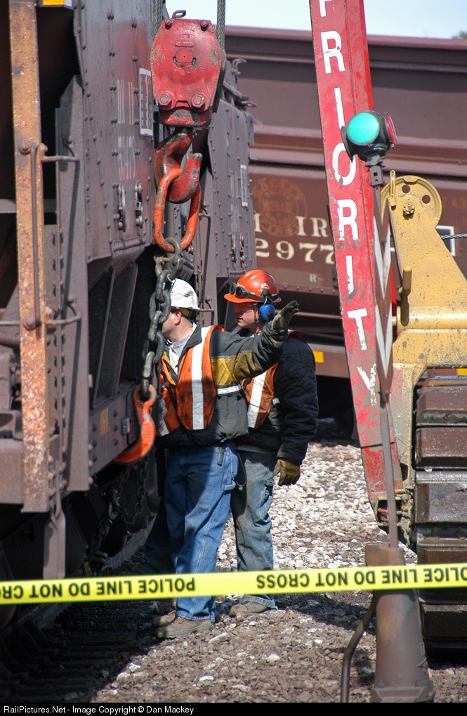 Ore empties split the switch at 2nd street giving residents of Proctor a front row seat to the derailment cleanup, here RJ Corman works on rerailing some of the cars