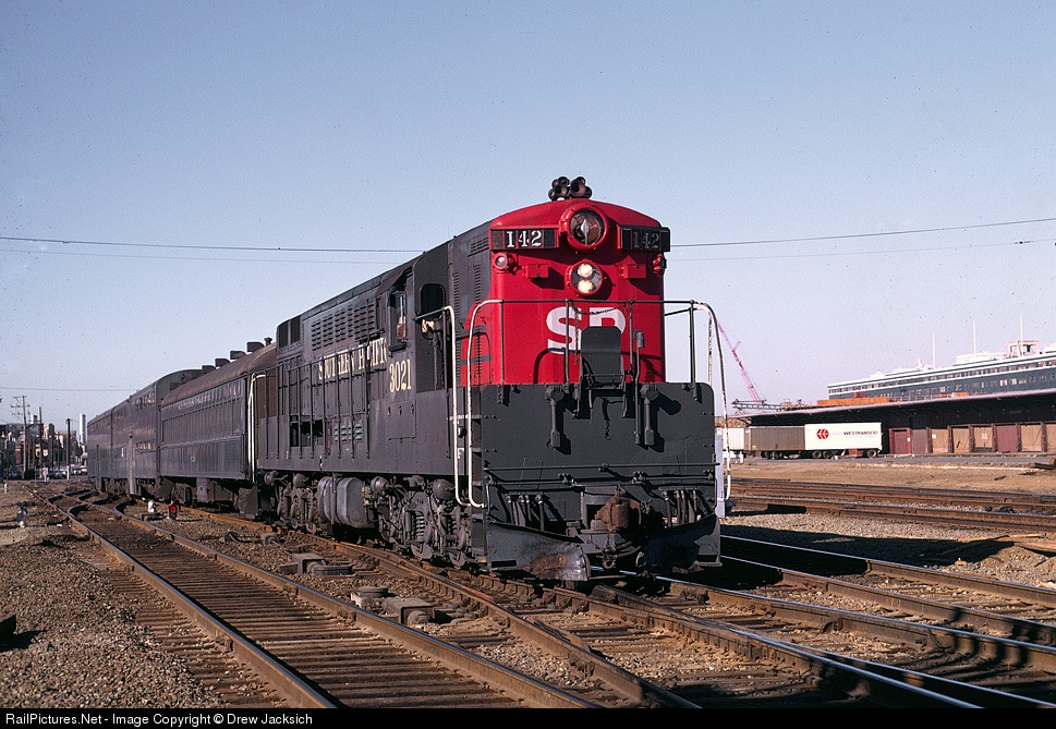 | Treading thru the double slip switches feparting 3rd & Townsend, SP FM Train Master is on its way to San Jose.