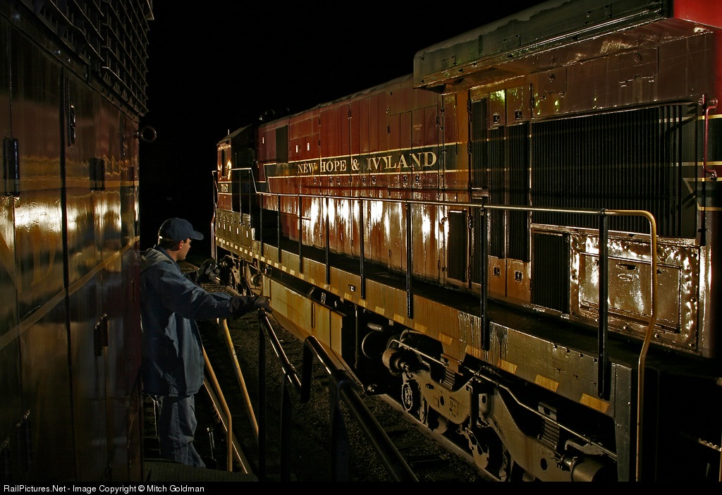 "Night Moves" After a long and productive day, a watchful eye ensures proper separation and placement of New Hope's GP30 #2198 and her six axle mate, GE C30-7 #7087. My thanks to the NHIRR crew and Pete Lerro for posing in this recreation which took place about an hour after the real deal.