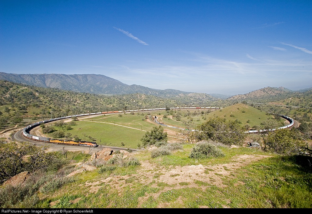 No foolin' around on April Fool's Day 2007 while UP 1996 takes on the famed Tehachapi Loop, toting a string of trailers toward Los Angeles.