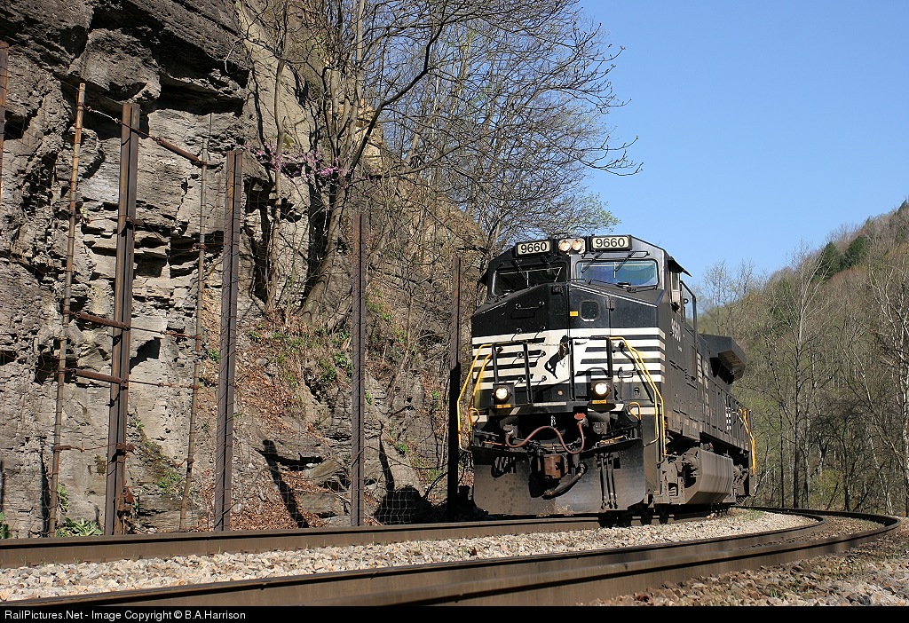 | Daily regular 17M leans into a sharp curve on the Pokey close to where WV, KY, and VA come together. The rugged stretch abounds in rock slide detector fences every few hundred yards. |