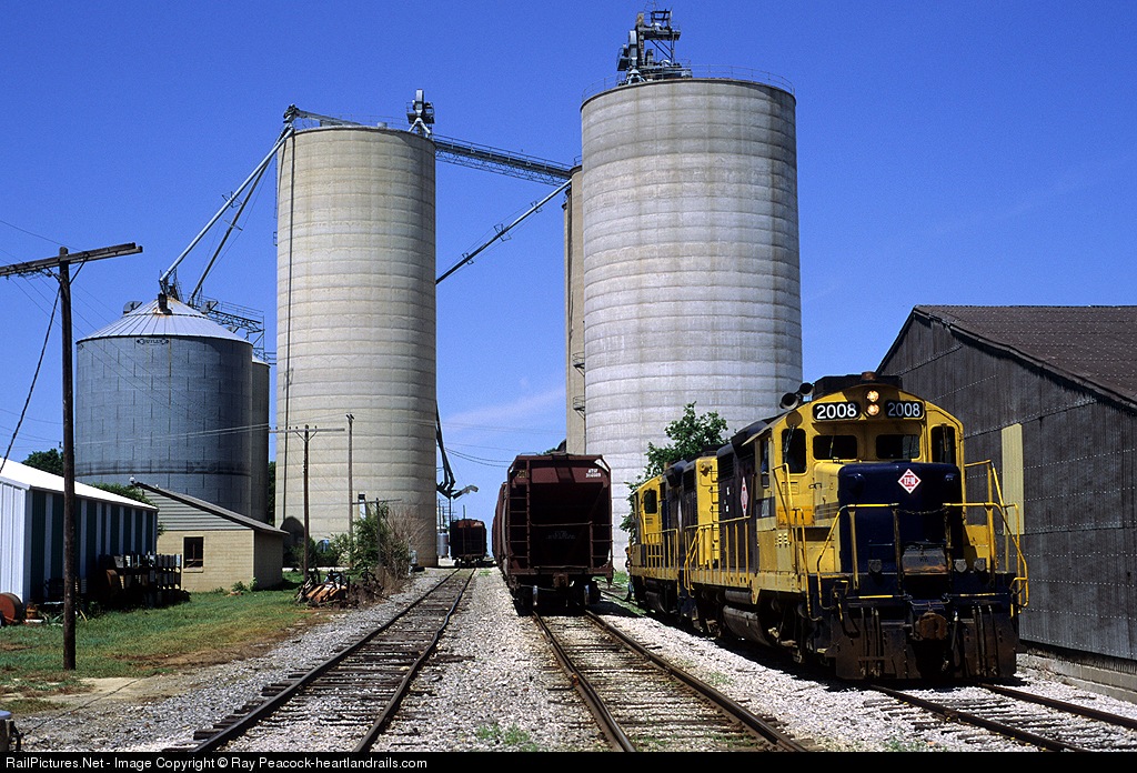 | With a handful of ex-SF GP20's to go along with their independence from Uncle John, the Tip-Up works the grain elevator at Fairbury in the days before Rail America. |