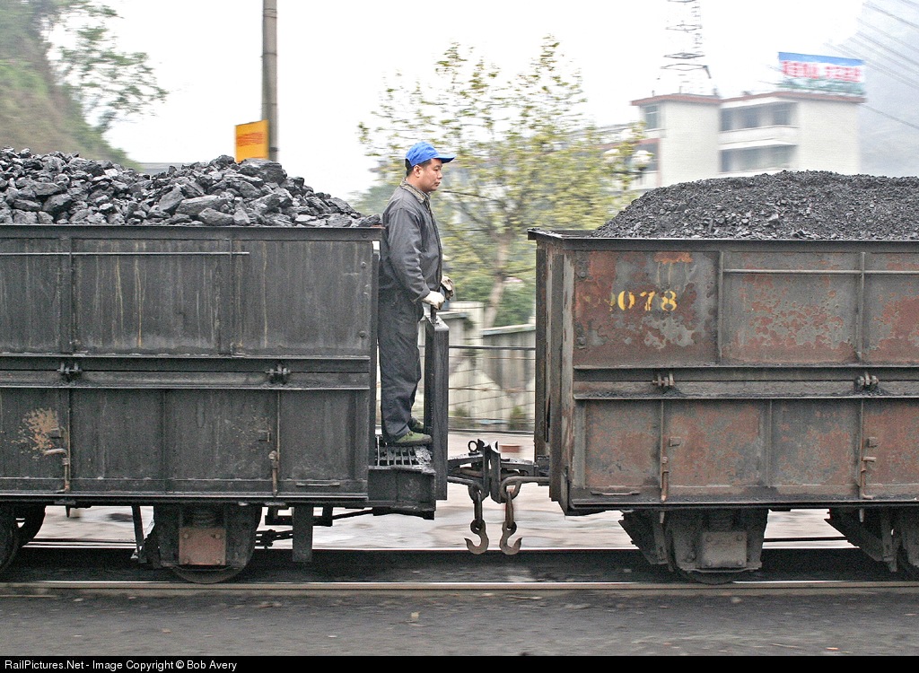 Coal trains on this railway have no through braking, relying instead on 4-5 intermediate brakemen on each train of 42 cars. One such brakeman is seen 'at speed', estimated at about 15 mph.