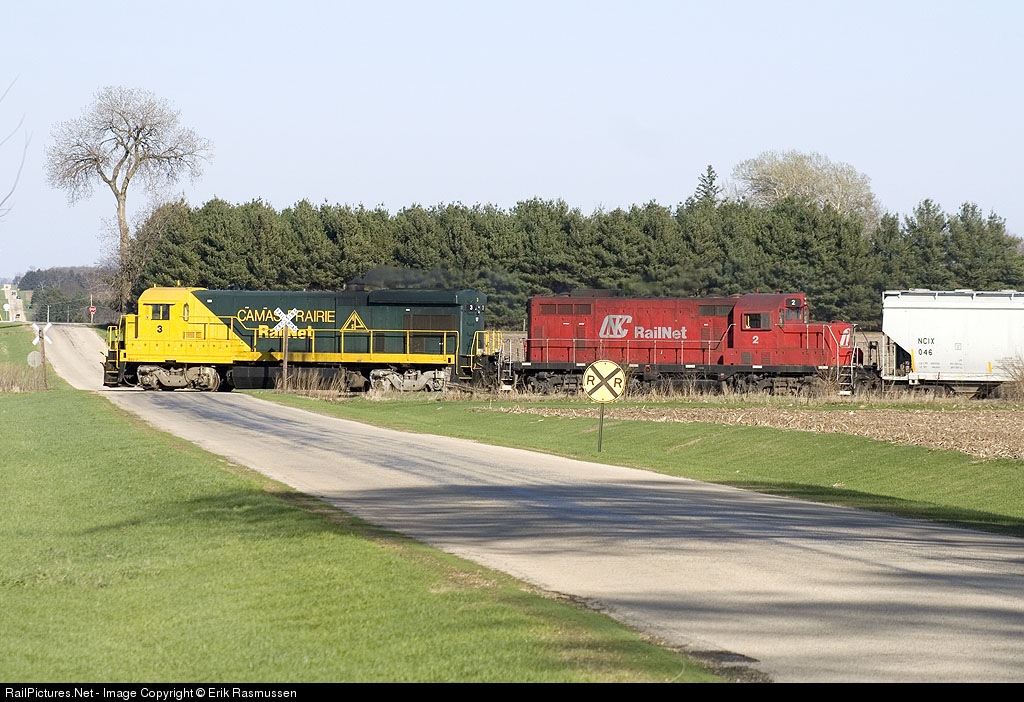Illinois Railway's Rockford job heads north across a typical Illinois country crossing.