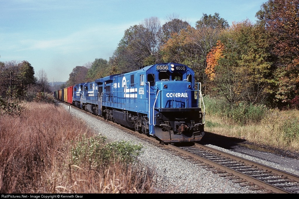 Conrail C30-7A# 6556 leads train PYSE-3 (Potomac Yard VA to Selkirk NY) on a fine fall morning at Piscataway (New Market) NJ