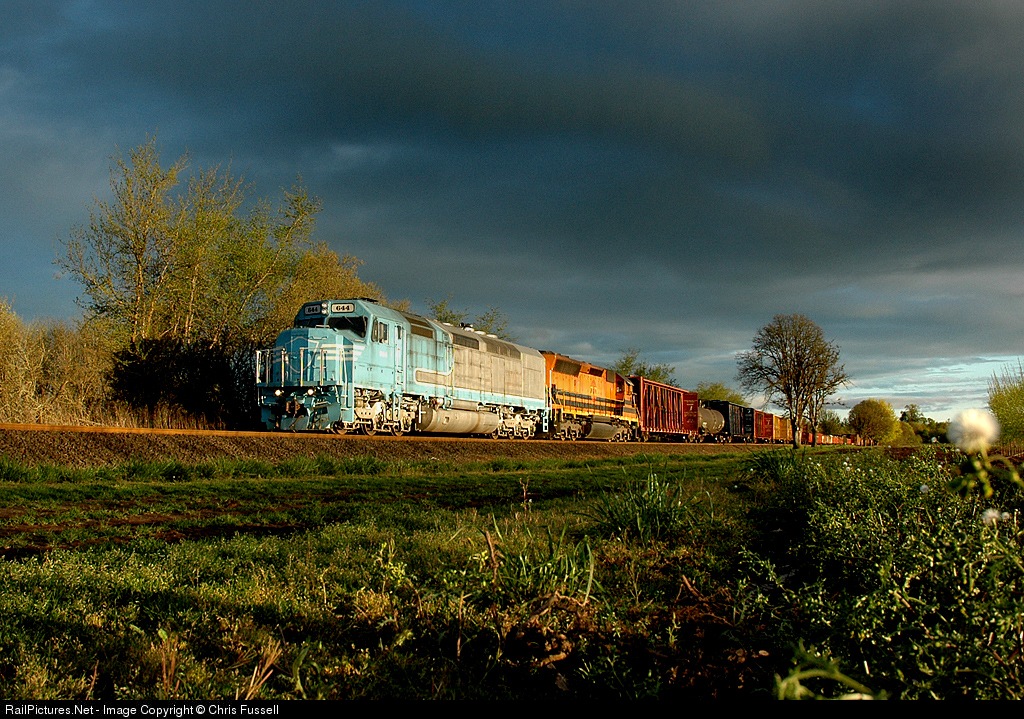 The 644 leads a northbound Westsider freight train towards McMinnville. It was pouring down rain just prior to this photo.
