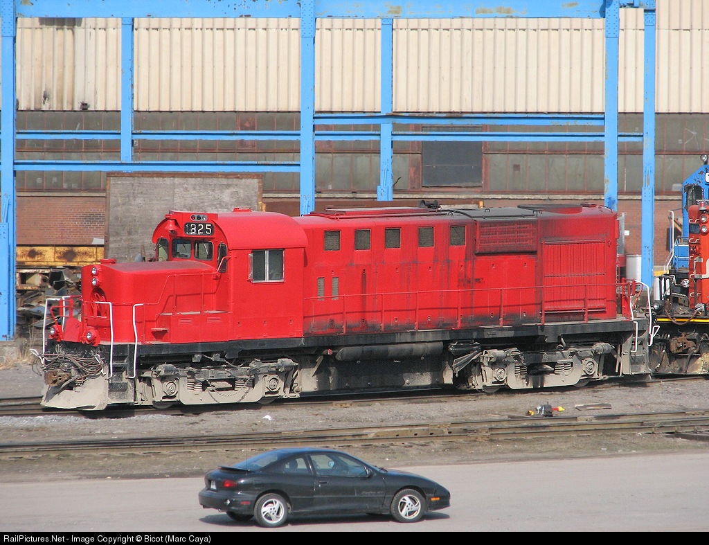 | Canadian Allied Diesel MLW/ Alco yard/shop switcher. Notice the oil leaks slowly creeping along the muddy frame. ...and NO, it's not my car sitting in front of the loco ;-) |