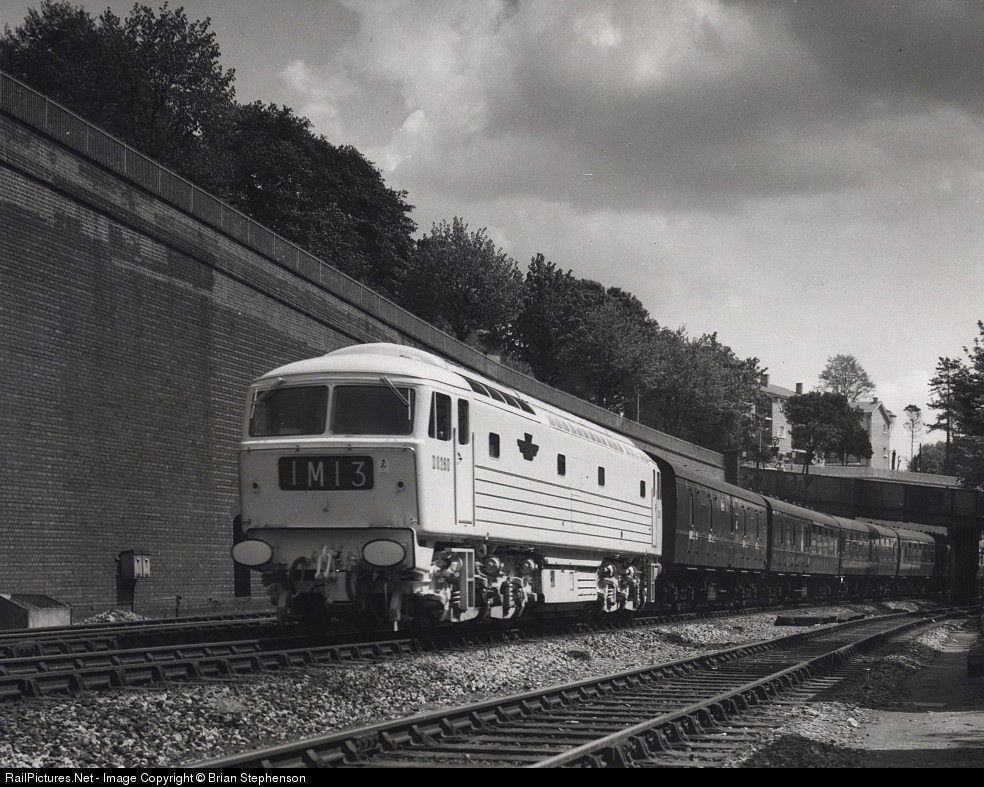 | From a negative taken by the late Hugh Harman, BR&CW 2,750hp sulzer engined prototype No D0260 'Lion' passes High Wycombe with the 12.10 London Paddington to Birkenhead express. |