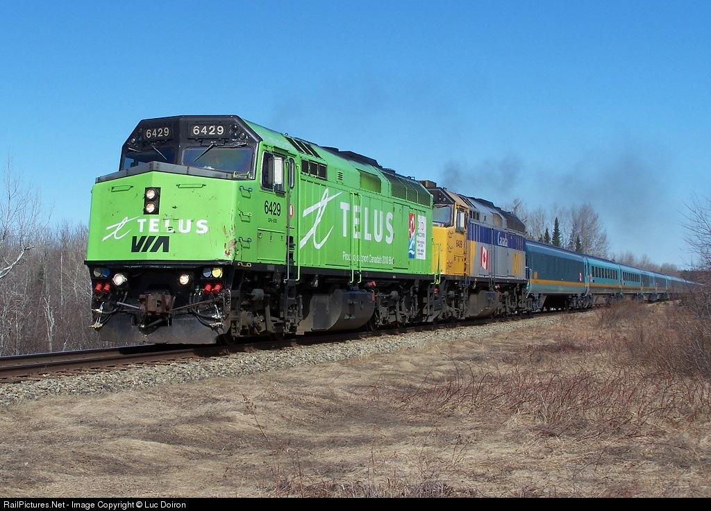 A long awaited shot. The Telus-painted VIA 6429 leads #14 up the grade to West Collette Crossing. 6414 was supposed to be trailing, but got changed out in Montreal.