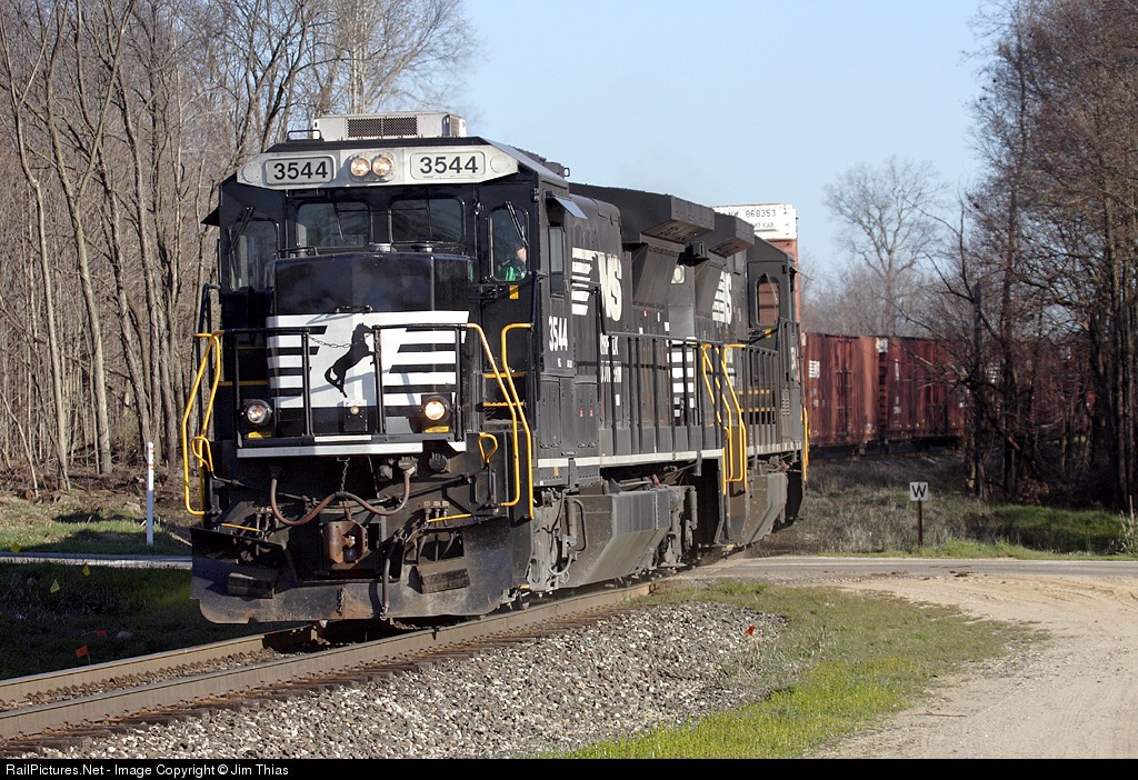 With a mixed load of freight destined for Elkhart, IN., NS 3544 snakes through the Michigan countryside on a clear and crisp spring morning.