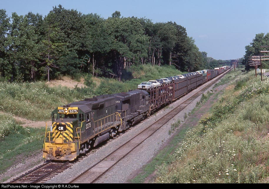| Conrail's first GP-40-2 was an ex Reading unit,shown here e/b with ex PC U-33-B 2969.Love those open auto carriers! |