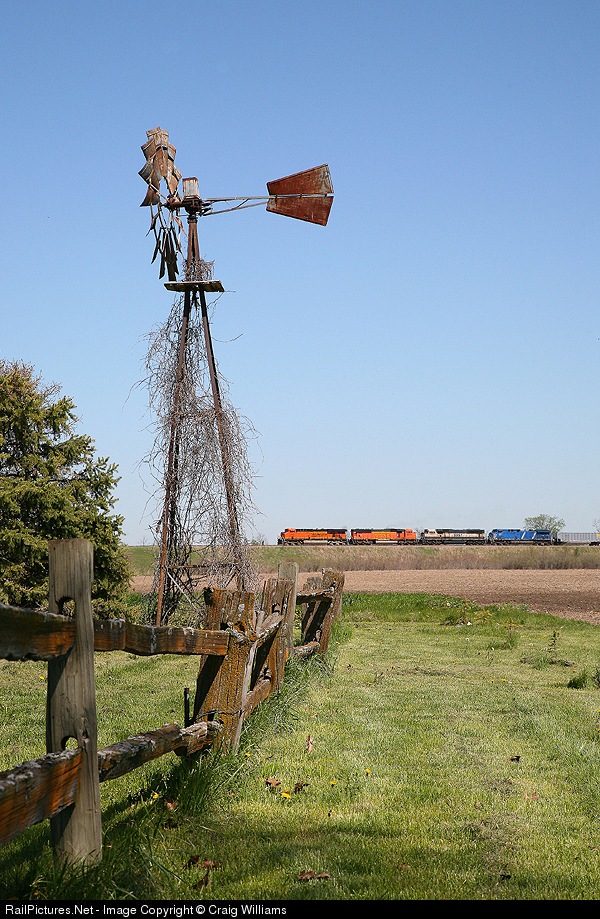 An empty coal train just off the Napier Sub is about a mile from crossing into Nebraska from Iowa. This empty came up the St. Joseph Sub from Kansas City, MO then took the Napier Sub from Napier, MO to Pacific Jct., IA, before heading west on the Creston Sub towards Lincoln, NE.