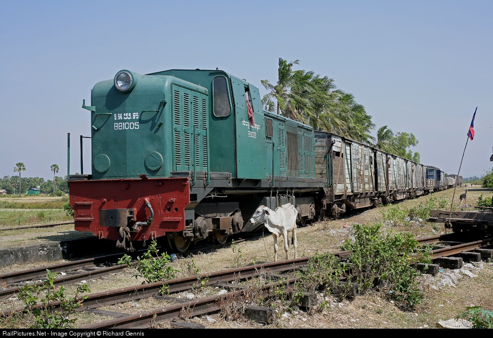| BB-1005 waits at Kampot for a northbound train to pass, although it will be five hours before the train passes, and this train can continue on its journey to Silhanoukville ! |