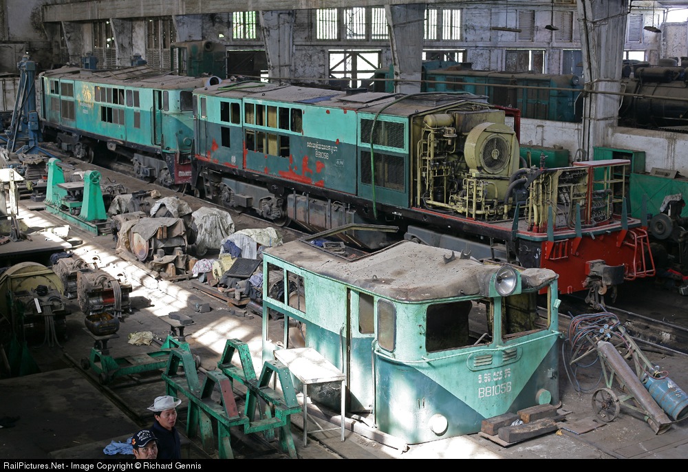 A rare view inside the depot at Phnom Penh shows BB-1056 and BB-1055 now withdrawn from use, BB-1056 was derailed in January 2006 and it was thought it could be repaired, but this has now been abandoned. This depot was step back in time for me ! !
