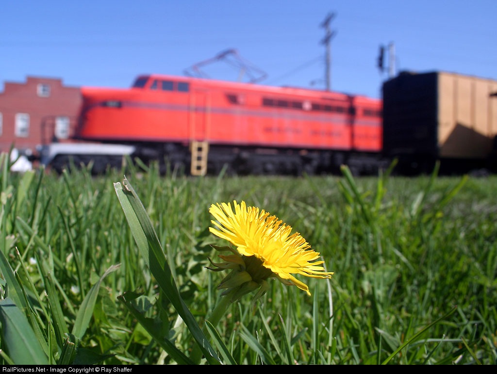 Former South Shore Railway Little Joe Bathes in the morning sun along with the dandelion's growing on the LSRHS's lawn.