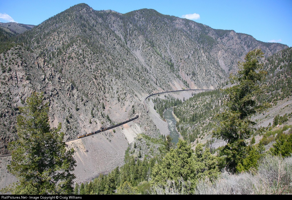 This Energy Mine, CO coal empty has just left Gore Canyon as it approarches Azure. At Bond, CO this train will diverge off the mainline for a 40 mile trip up the Craig Branch to Phippsburg, CO for the next crew change.