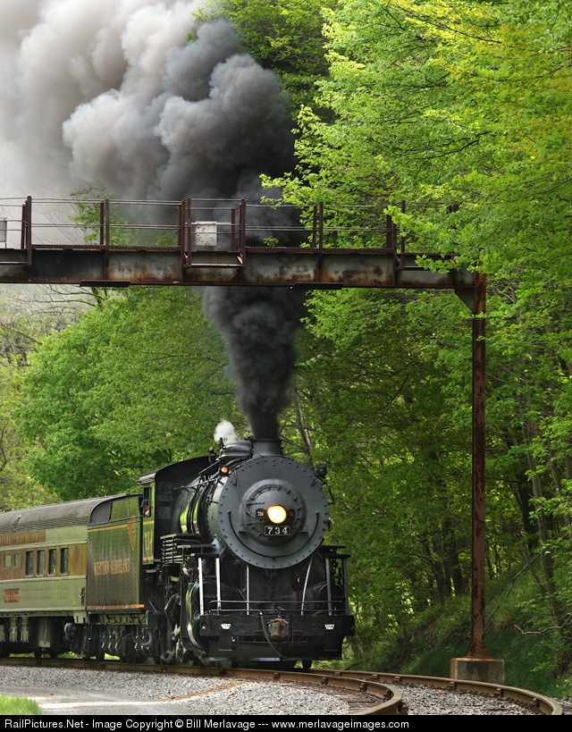 RailPictures.Net Photo: WMSR 734 Western Maryland Scenic Railroad Steam 2-8-0 at Cumberland, Maryland by Bill Merlavage --- www.merlavageimages.com