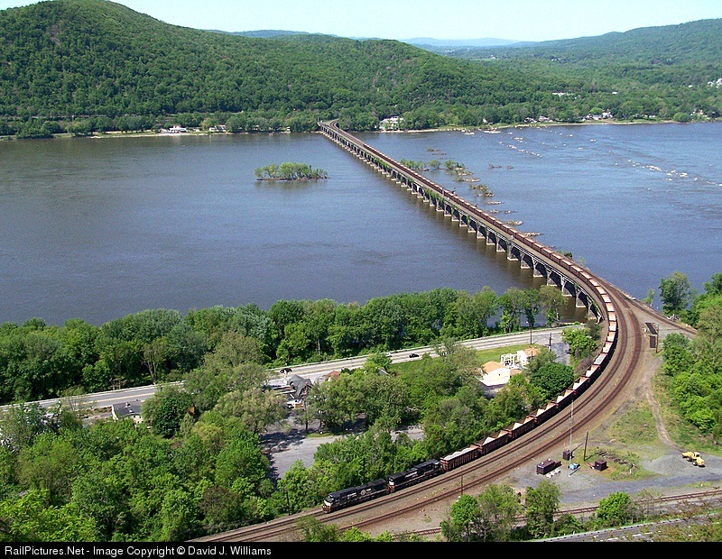 An Eastbound NS 919 Herzog train crosses Rockville Bridge as it heads toward Harrisburg.