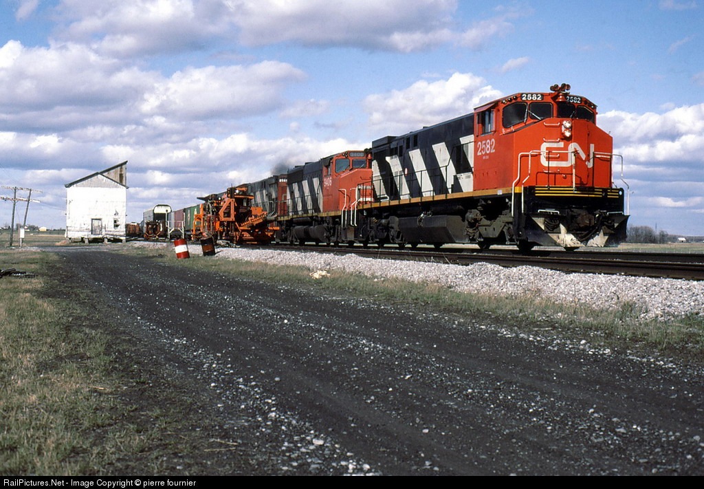 CN 345 on its way to Montreal,these MR-420s were being lightened from 260,000 lbs to 248,000 to be used on light rails to replace the MR-14 1750s being retired and renumbered in the 3500,s.