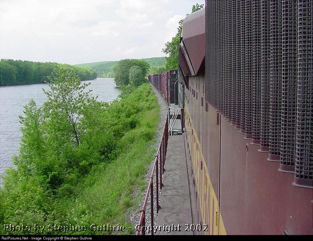 Looking back on the Engineers side of L012-10 running alone the Wisconsin River north of Wausau, WI