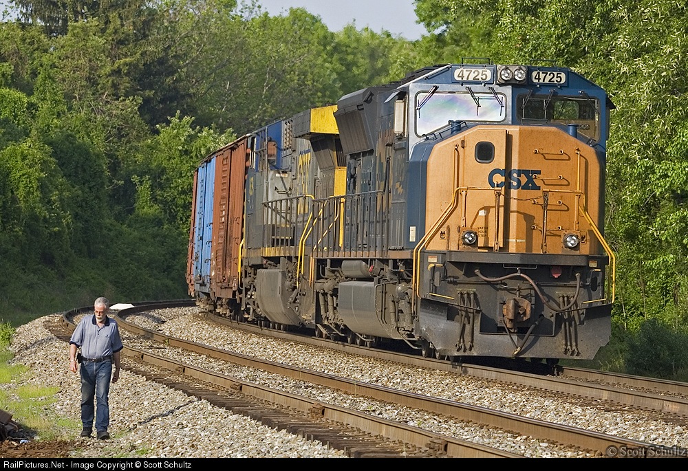 The engineer of Q406 looks over a pile of rail, while waiting to do a visual inspection of Q703 which will shortly be routed onto the Aiken siding, in order to let Q406 and Q172 continue their eastbound journeys. Out of frame, Q172 is currently directly behind Q406, stretched out across the Susquehanna River Bridge.