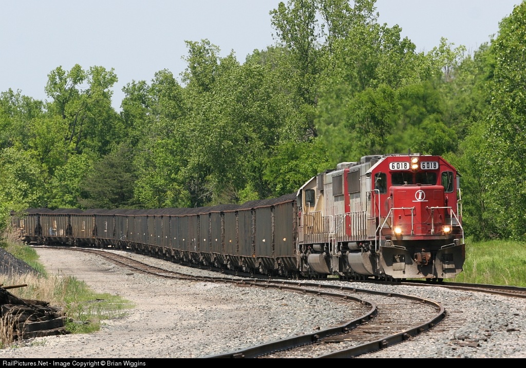 6018 pulls an Indianapolis bound coal train through the bypass at Hiawatha Yard.