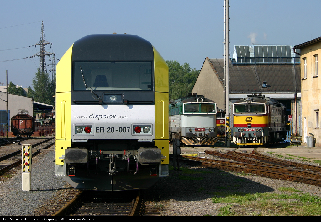 | ER 20-007 at short stop in the Ostrava engine house before its move to the Czech Raildays fair area. The 750.042, 754.086 and 754.021 are behind. |