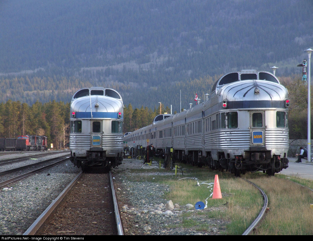 RailPictures.Net Photo: VIA 8703 VIA Rail Budd Park Car at Jasper, Alberta, Canada by Tim Stevens