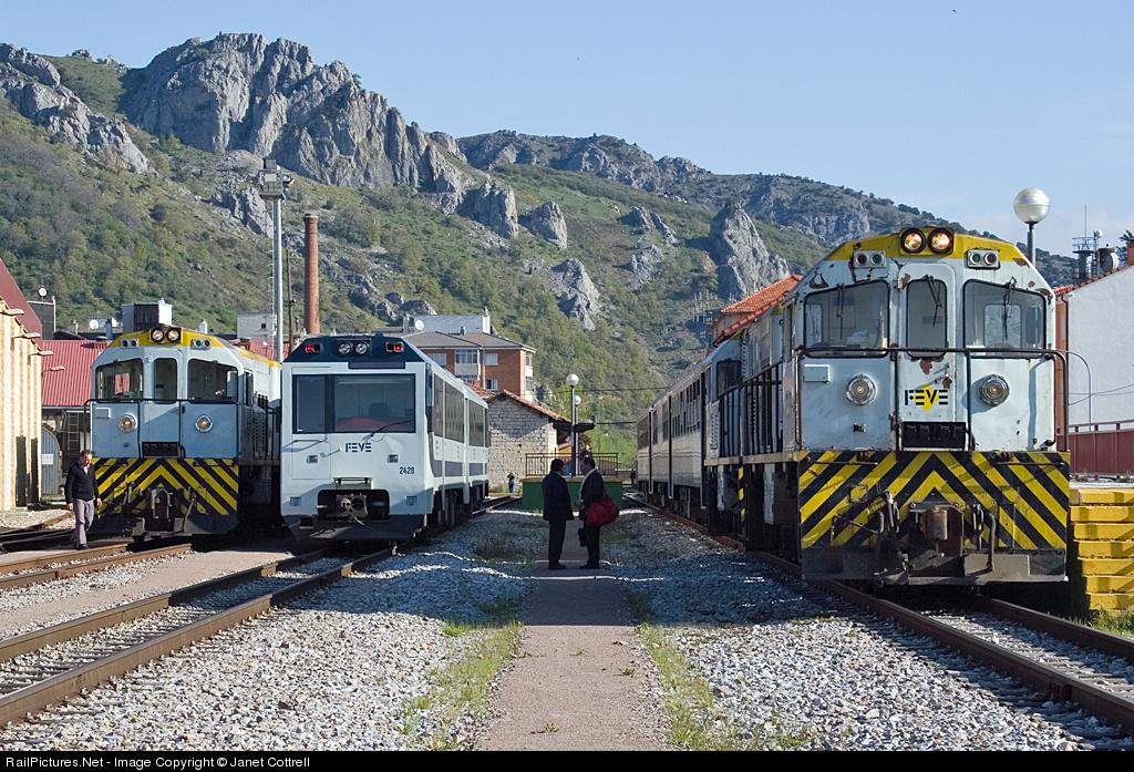| Line up at Cistierna, 1509/02 on the left, DMU 2426 in the middle and 1510/03 on the right on a PTG tours special train. |