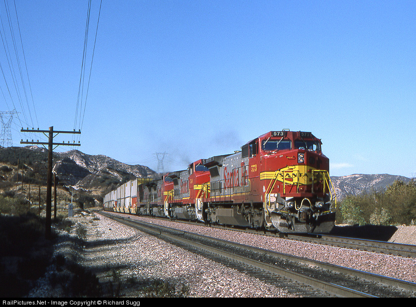 RailPictures.Net Photo: ATSF 573 Atchison, Topeka & Santa Fe (ATSF) GE B40-8W (Dash 8-40BW) at Cajon Pass, California by Richard Sugg