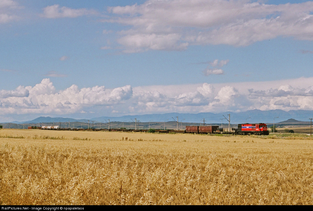 Against a cloudy sky and a harvest ready to be crooped freight 48691 returns to Thessaloniki from the border station of Idomeni.