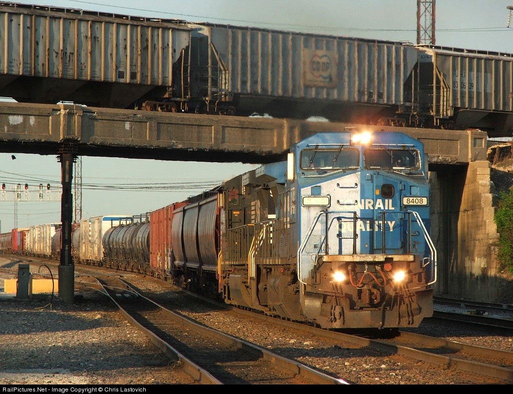 A former CR Dash 8 still looking as new as it did years ago under Conrail ownership rolls west with manifest for LaCrosse, WI.