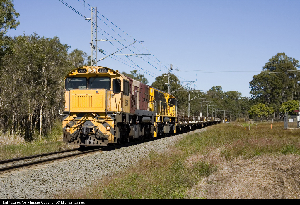 | QR 2198F/2163 (freshly painted QRNational scheme) crawl into Maryborough West on the lead of Rail Set Train #7U39 for a crew change one clear, winter morning. |