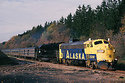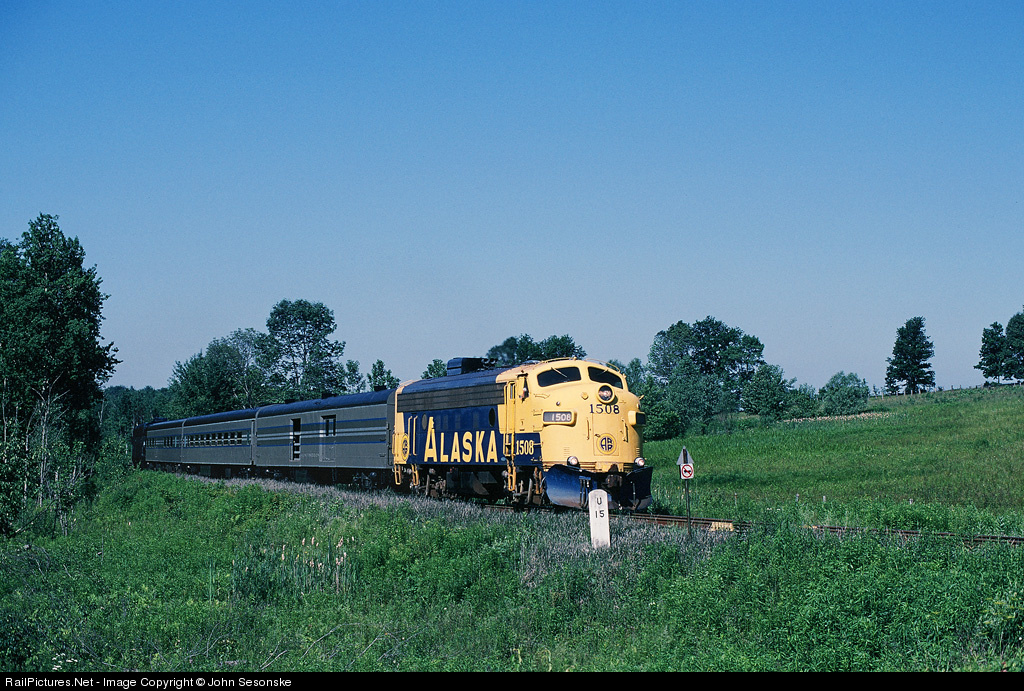 15 miles from Utica. The Saturday morning train from Utica to Thendara passes milepost U15 on this former New York Central line. The train is lead by power still in the completely untouched paint of its previous and original owner, Alaska RR.
