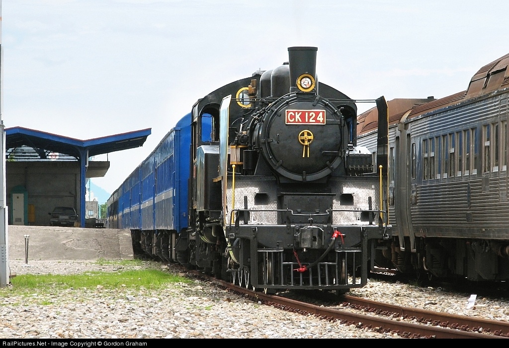 | My first trip to Taiwan . TRA CK 124 Steam Locomotive is on display at Hualien Station for the Taiwan Railway Adminstration 120 Anniversary Trip . CK 124 was built by Japan , it is the same as the C12 steam locomotives using in Japan . |