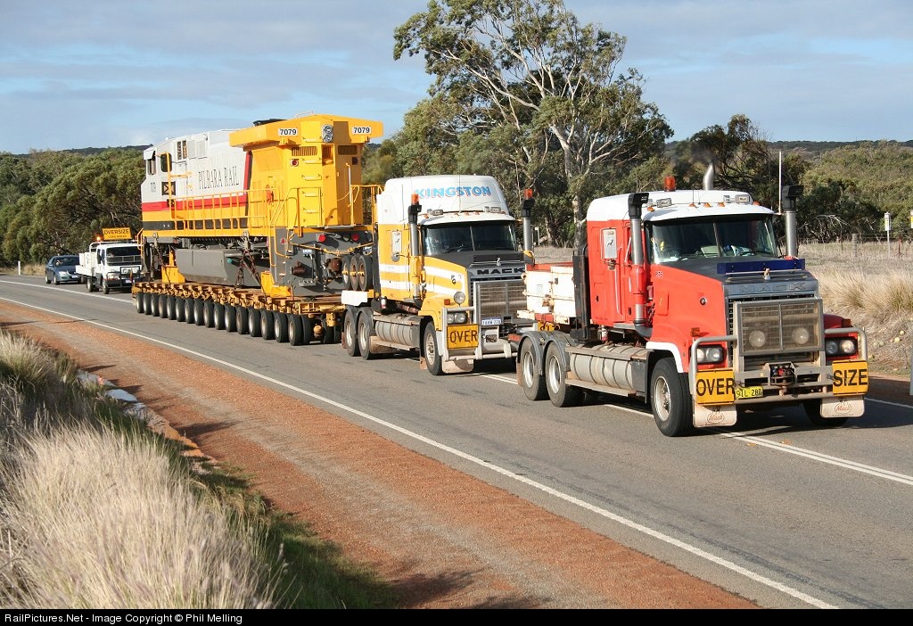 Pilbara Rail GE -9 -44CW 7079 is seen after a rebuild/ repaint following a collision earlier in the year heading back to the North West of W.A.
