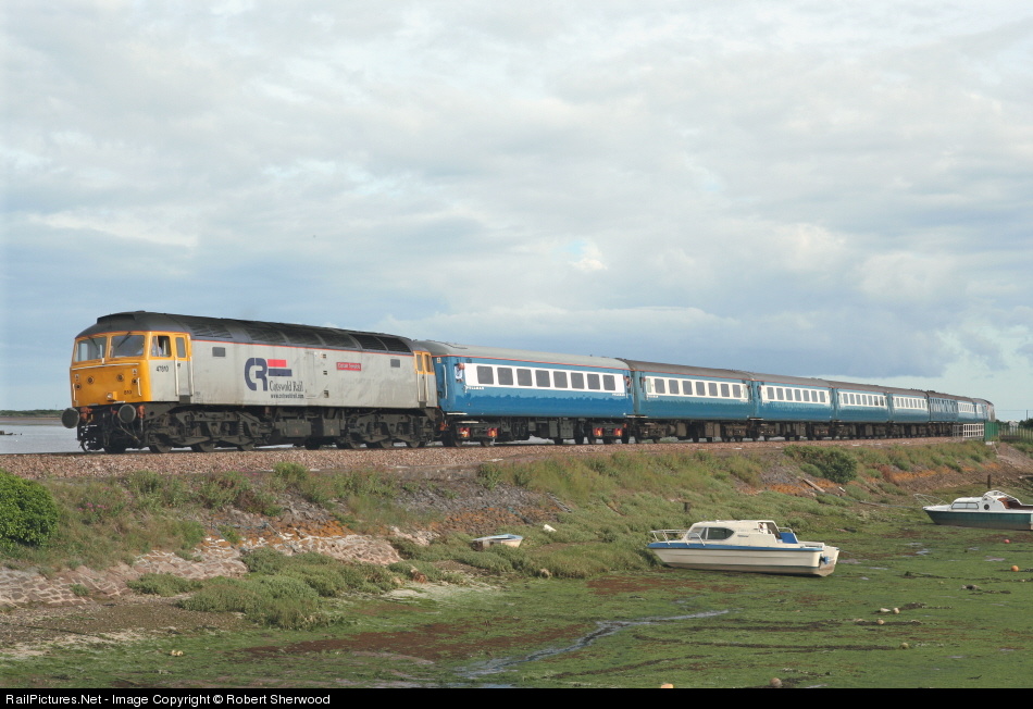 | 47810 passes Cockwood Harbour on Saturday 23rd June 2007, hauling the 1Z42 17:15 Kingswear – Ashford International ‘Blue Pullman’ charter |