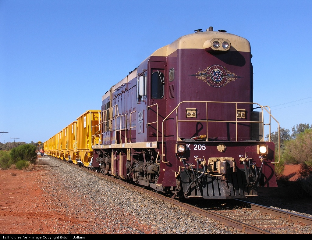 South Spur Rail's K205 occasionally hauls rail trains to Kalgoorlie during the week when its not hauling the company's Spirit of the West restaurant train in Perth.