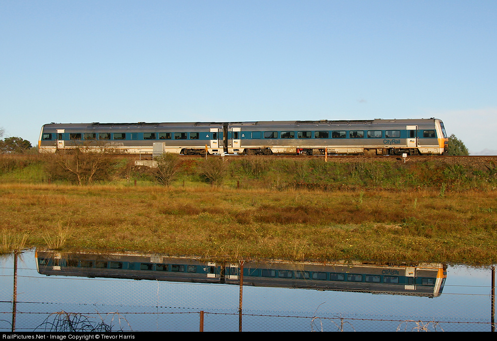 | 2806 heading to campbelltown in early morning sun, thanks to the local flooding in the area a great reflection affect in the water. |