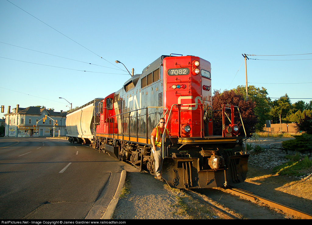 RailPictures.Net Photo: CN 7082 Canadian National Railway EMD GP9 at Brantford, Ontario, Canada by James Gardiner www.railroadfan.com