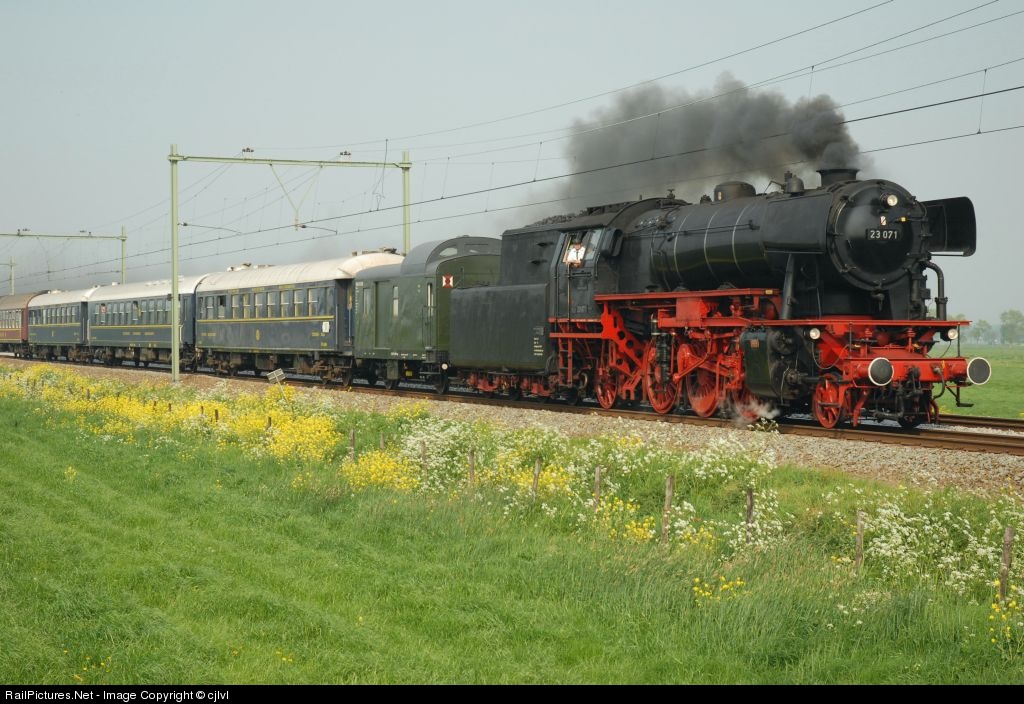 VSM 23 071 (ex German Railroad DB) leads a special steamtrain service from Apeldoorn to Raotterdam.
