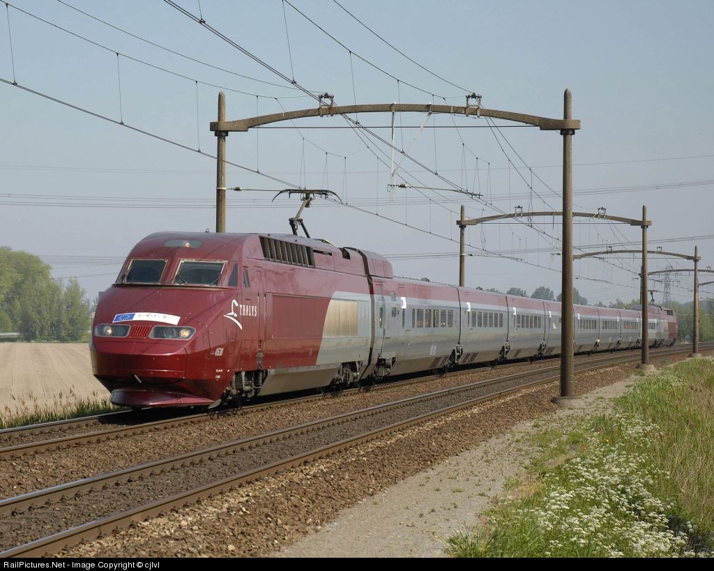 Thalis 4538 runs High speed service from Amsterdam to Paris. On its trip it will cross three different powersytems 1.5Kv DC in the Netherlands, 3Kv DC in Belgium, and 25Kv AC in Belgium and France
