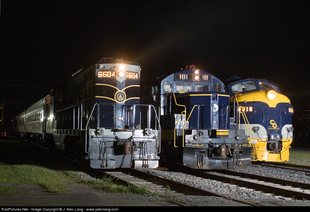 Potomac Eagle lineup: B&O GP7 6604, SBVR SD18 181, and C&O F7A 8016.