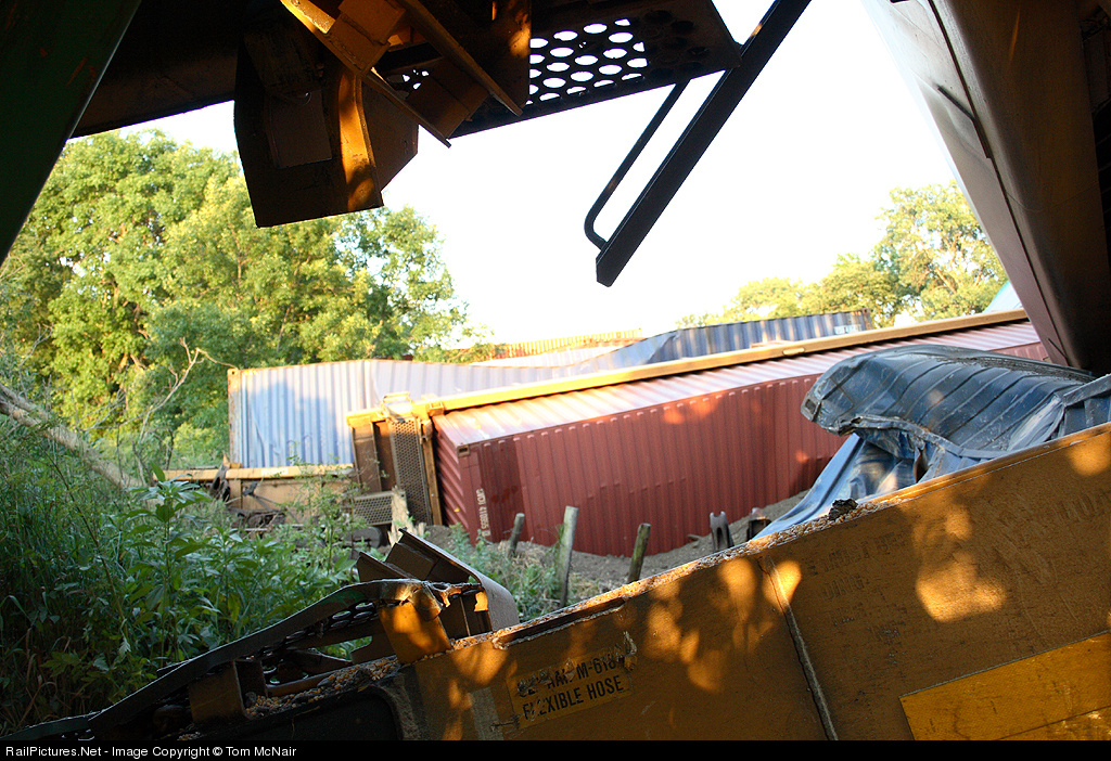 An aftermath view of the July 7th derailment of a Union Pacific westbound stack train on BNSF's Chillicothe Sub.